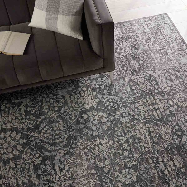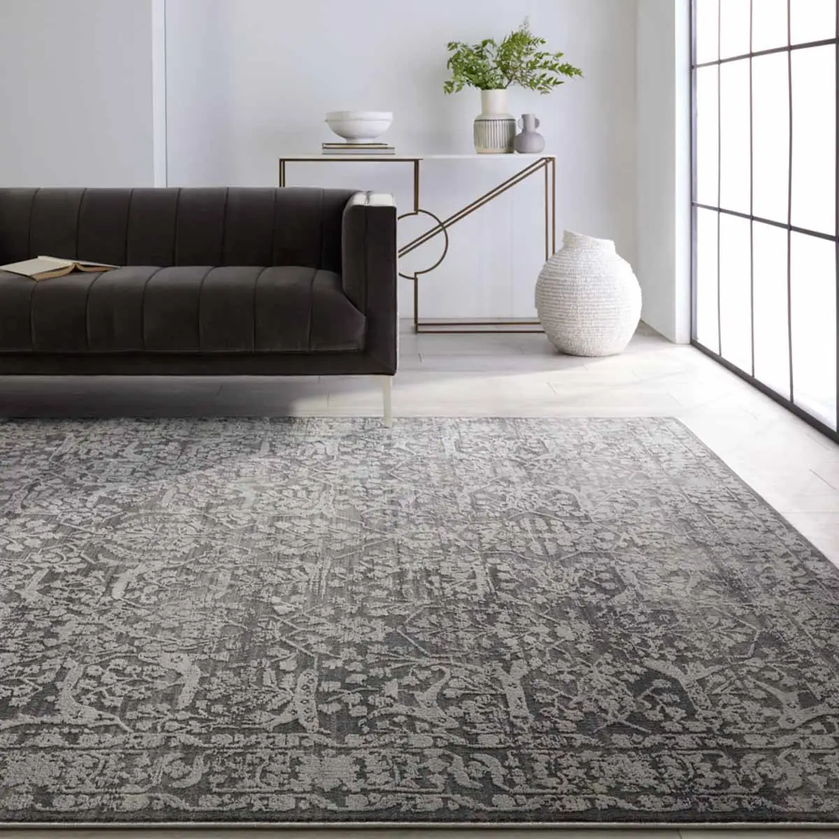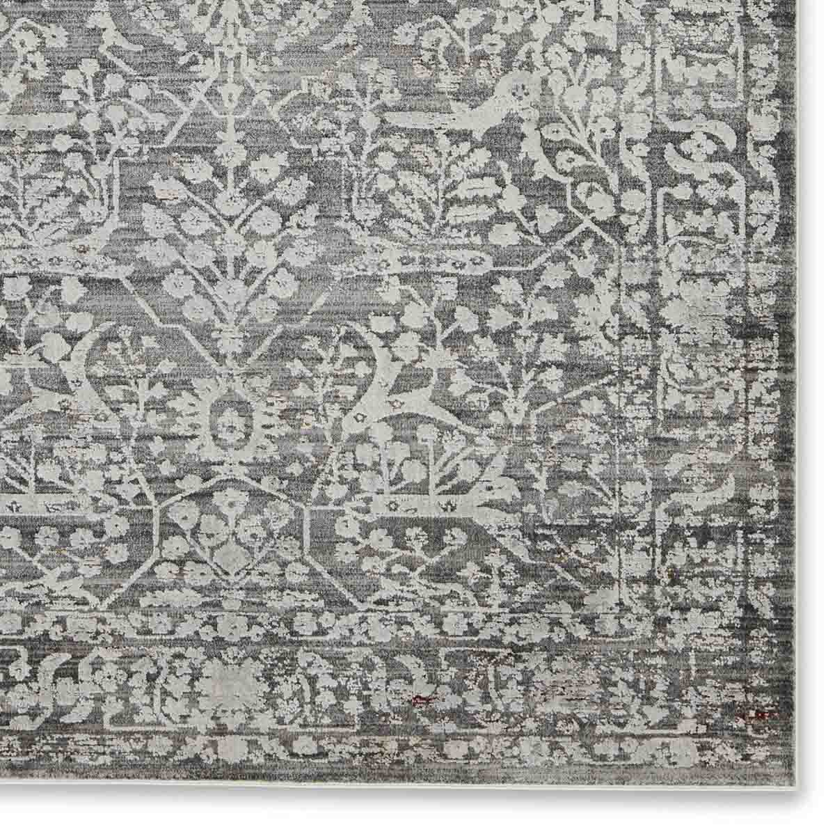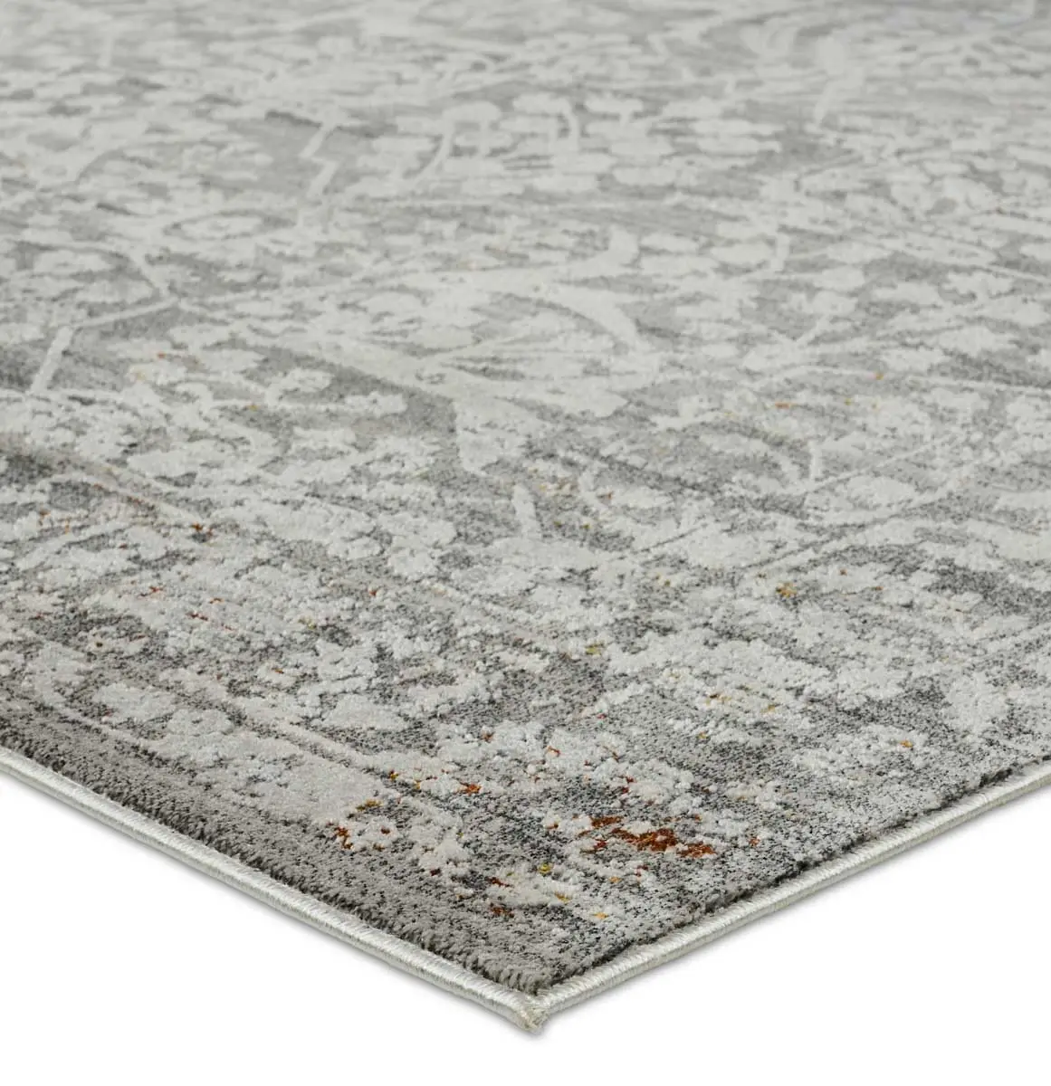 The ACDDIR collection features an assortment of both contemporary and timeless designs paired with a sumptuous sheen and irresistible, soft hand. The Elvira area rug depicts a distressed floral pattern in transitional hues of gray, cream, and silver with hints of rust and gold. The high-low pile creates depth and texture that perfects high and low traffic spaces of the home such as bedrooms, living rooms, offices, entryways, and halls.