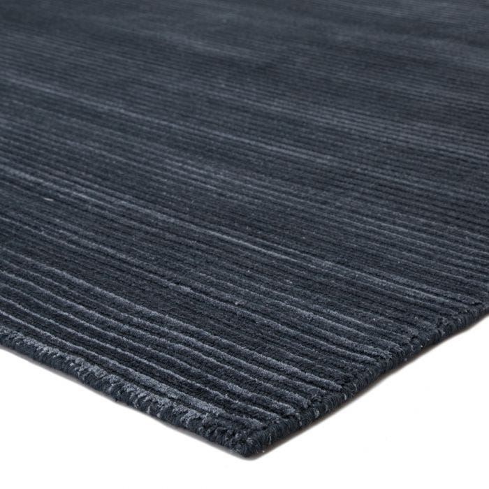 This sleek hand-loomed area rug boasts a lustrous dark blue colorway with texture-rich stripes creating a ridged high-low feel. In a soft combination of wool and viscose, this versatile accent lends a rich tone to modern homes.