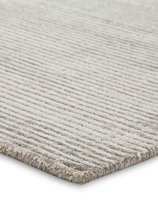 Sophisticated and handsomely modern, the BIDIR collection takes an elemental accent to a sleek new level. The neutral taupe hue of this hand-loomed double back rug makes for a versatile foundation in bedrooms and living spaces. Crafted of durable wool and soft, lustrous rayon made from bamboo, the cut and looped pile creates a subtle stripe design rich with texture.