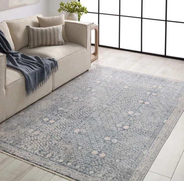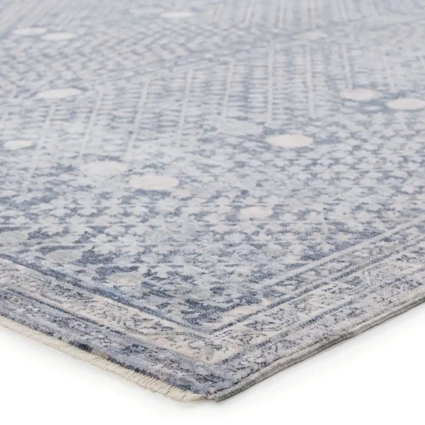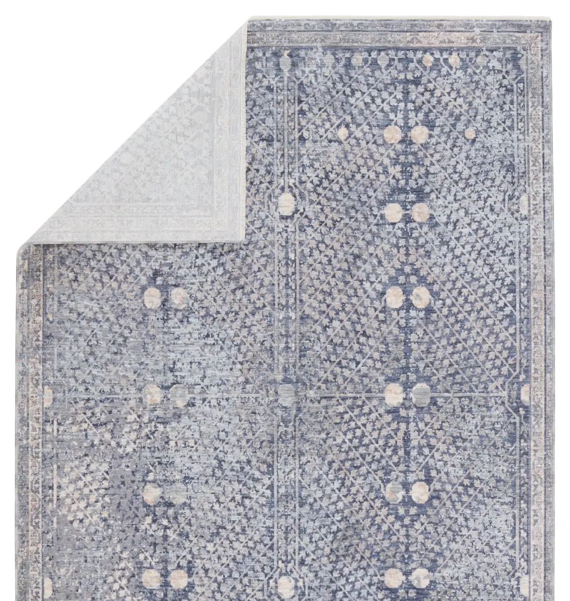 The BLADIR collection features soft luxurious pile and serene, dimensional colorways created by the space-dyed yarns. The rug boasts an ornate, vintage-inspired pattern that complements transitional and contemporary spaces with grounding tones of of light blue and gray. Perfect for heavily trafficked spaces, this polyester rug is easy to clean and perfect for homes with pets and children.