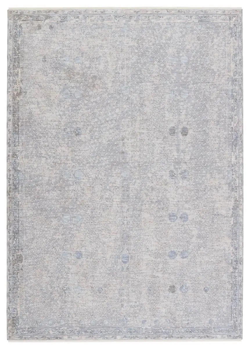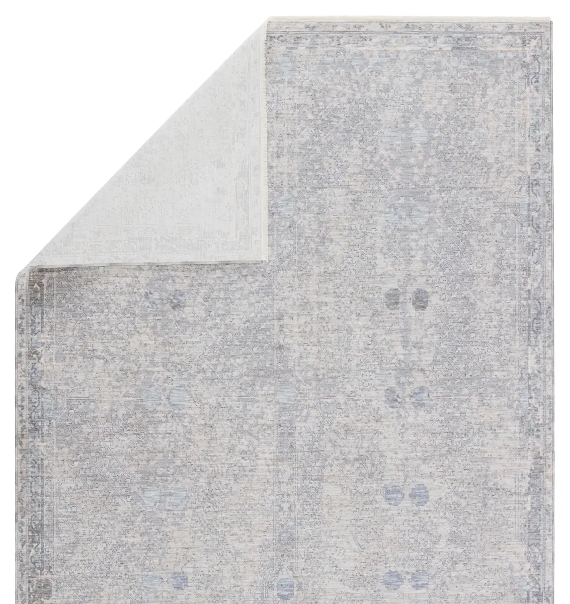 The BLADIR collection features soft luxurious pile and serene, dimensional colorways created by the space-dyed yarns. The rug boasts an ornate, vintage-inspired pattern that complements transitional and contemporary spaces with grounding tones of of light gray, beige, and ivory. Perfect for heavily trafficked spaces, this polyester rug is easy to clean and perfect for homes with pets and children.