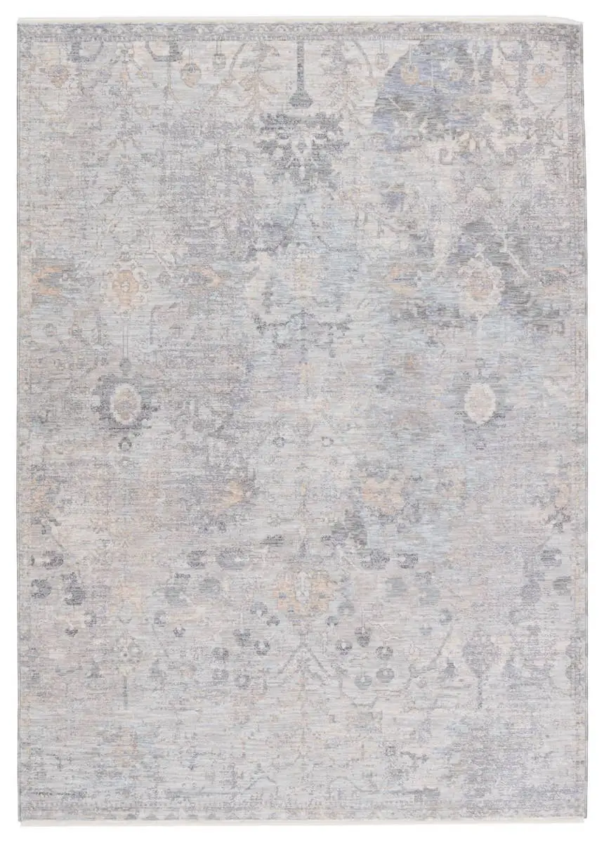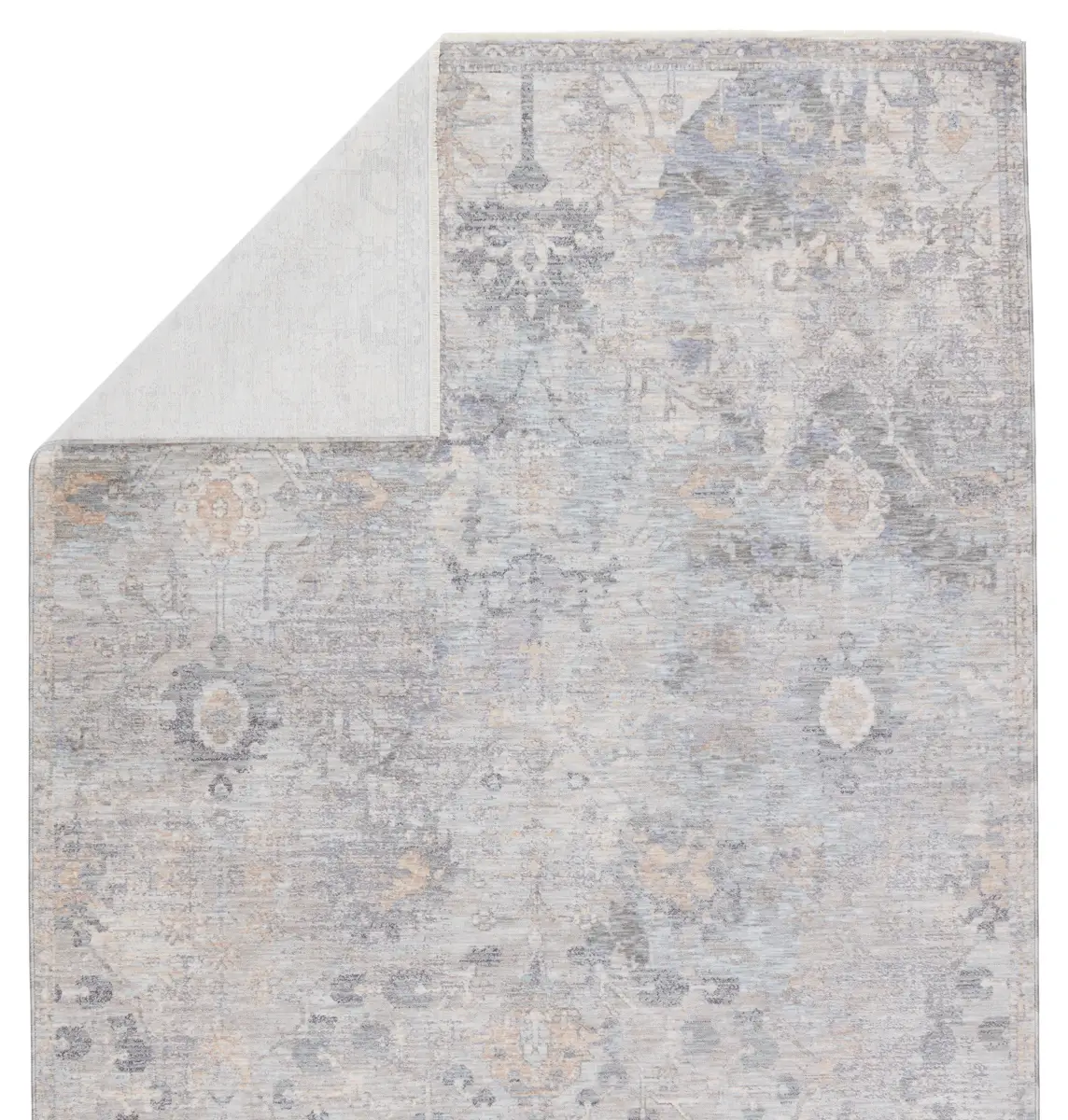 The BLADIR collection features soft luxurious pile and serene, dimensional colorways created by the space-dyed yarns. The rug boasts an ornate, vintage-inspired pattern that complements transitional and contemporary spaces with grounding tones of beige gray. Perfect for heavily trafficked spaces, this polyester rug is easy to clean and perfect for homes with pets and children.