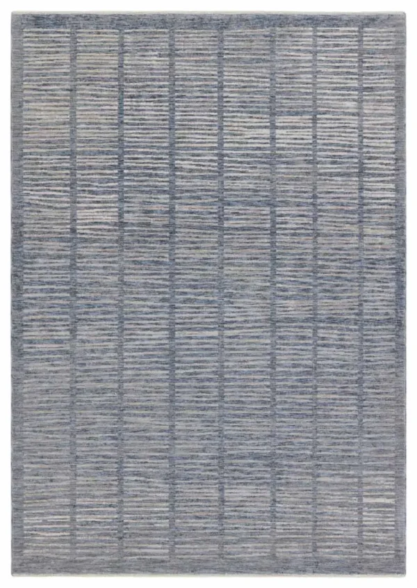 The BLADIR collection features soft luxurious pile and serene, dimensional colorways created by the space-dyed yarns. The rug boasts an ornate, vintage-inspired pattern that complements transitional and contemporary spaces with grounding of gray and light blue.  Perfect for heavily trafficked spaces, this polyester rug is easy to clean and perfect for homes with pets and children.