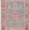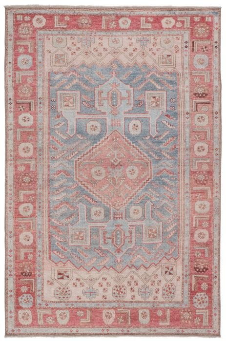 Bringing vintage inspiration to life with ornate, worldly designs and a timeless distress effect. This area rug showcases a unique Anatolian design in a contemporary pink and sky blue colorway. This zero-pile rug is made of cotton, polyester, and soft chenille for a flat, durable finish.