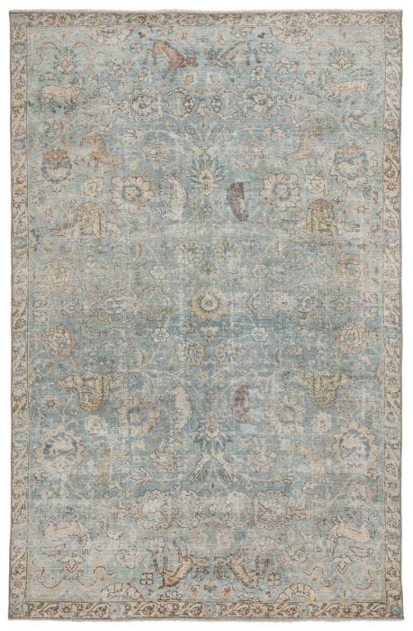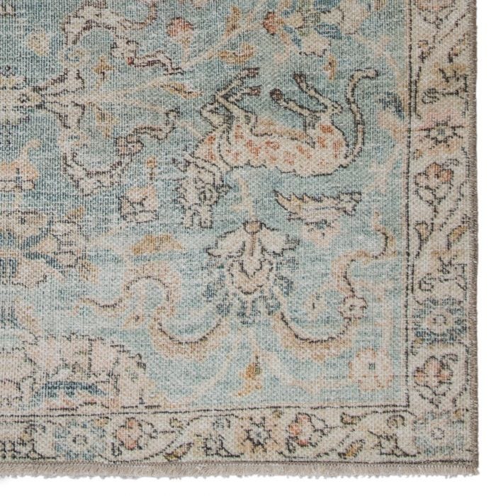 Bringing vintage inspiration to life with ornate, worldly designs and a timeless distress effect. This area rug boasts an antique hunting motif with wildlife and fleurette details in deep blue, gold, and green. This zero-pile rug is made of cotton, polyester, and soft chenille for a flat, durable finish.