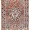 Bringing vintage inspiration to life with ornate, worldly designs and a timeless distress effect. This area rug boasts a Persian-inspired center medallion and detail-rich border in a terra cotta, gray, blue, and green colorway. This zero-pile rug is made of cotton, polyester, and soft chenille for a flat, durable finish.