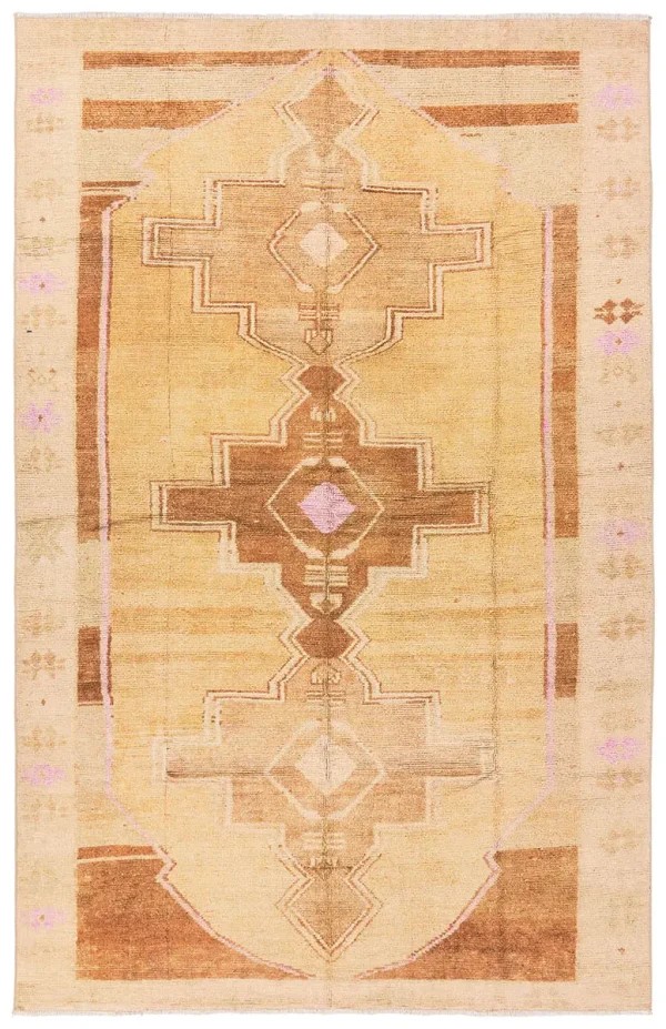The BOHDIR collection brings vintage inspiration to life with ornate, worldly designs and a timeless distress effect. The area rug features a Southwestern-inspired medallion pattern in faded yet warm hues of tan, pink, brown, and cream. Intriguing geometrics, a thick border, tasteful distressing, and short, cream fringe create a vintage feel. In Turkey, this design is printed onto a 1/6th inch thick cotton, polyester, and soft chenille base with a flat finish and low-profile feel. Printed rugs are durable, easy to clean, and comfortable underfoot?perfect for high traffic areas of the home like playrooms, halls, living rooms, and entryways.