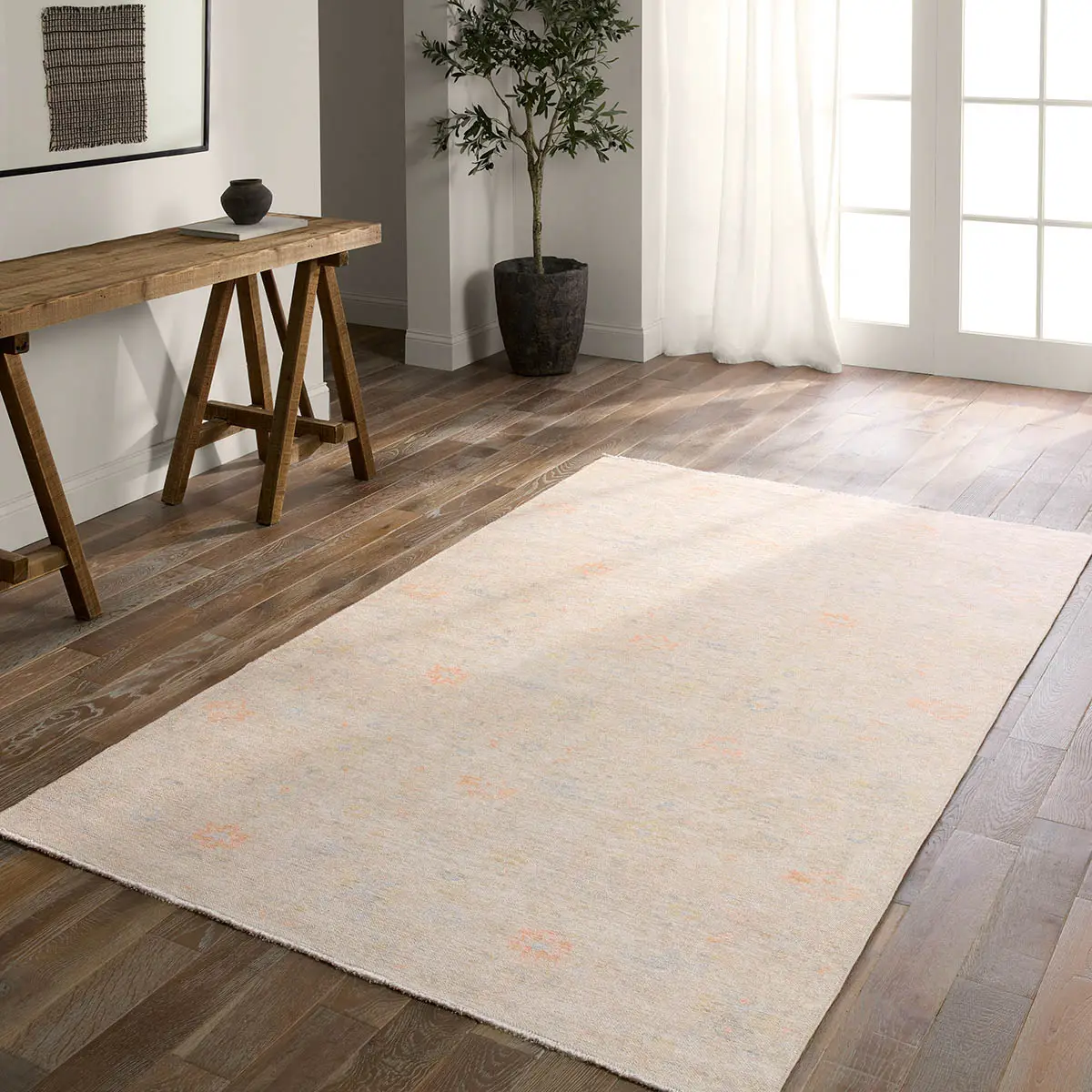 The BOHDIR collection brings vintage inspiration to life with ornate, worldly designs and a timeless distress effect. The area rug features a Southwestern-inspired medallion pattern in faded yet warm hues of cream, and light blue, with hints of orange, yellow, and green. Intriguing geometrics, a thick border, tasteful distressing, and short, cream fringe create a vintage feel. In Turkey, this design is printed onto a 1/6th inch thick cotton, polyester, and soft chenille base with a flat finish and low-profile feel. Printed rugs are durable, easy to clean, and comfortable underfoot?perfect for high traffic areas of the home like playrooms, halls, living rooms, and entryways.