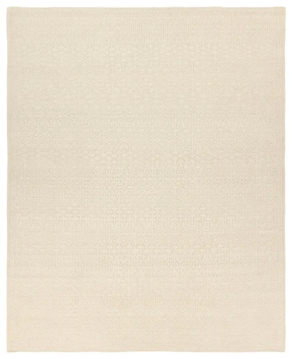 Timeless and versatile, effortlessly blending intricate, scrolling patterns and organic, earthy neutrals. This area rug features a variety of geometric patterns ranging from trellises and diamonds to dots and stripes. Artisans in India hand carve these Moroccan-inspired designs into the inherently stain-resistant 100% wool pile. The beautiful cream hue comes from the natural color of the sheep without any dyes or pigments, for a completely organic colorway. Short 1/6th inch pile not only withstands both high and low traffic but also allows for easy care and cleanup. Obtaining both a Nest Seal and RugMark certification, this global area rug brings ethical, handmade luxury to the home.