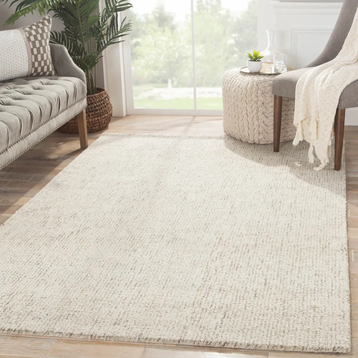 The tweed-inspired pattern of this contemporary area rug offers understated visual texture, while the hand-tufted wool construction presents a soft feel and timeless look. A multi-tone design of light gray, tan, and brown creates a sophisticated statement on this chic layer.