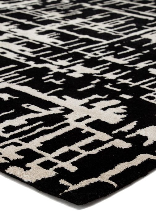 Infusing homes with contemporary design and organic-inspired motifs. This area rug makes bold and contrast-rich impression with a cream and black cross-hatched, linear design. Handmade of luxe viscose and wool, this rug boasts a plush feel underfoot and subtle sheen.