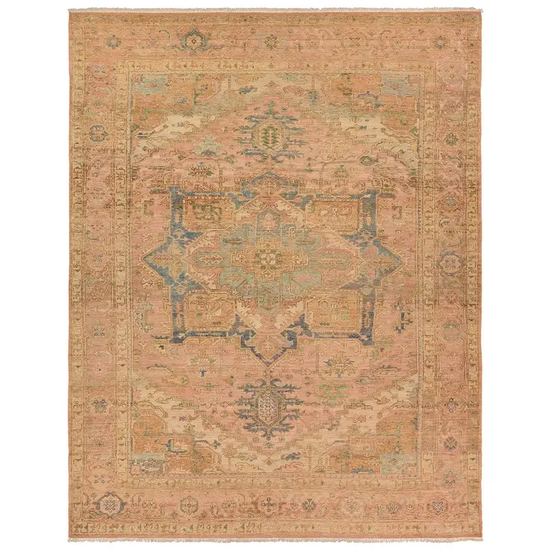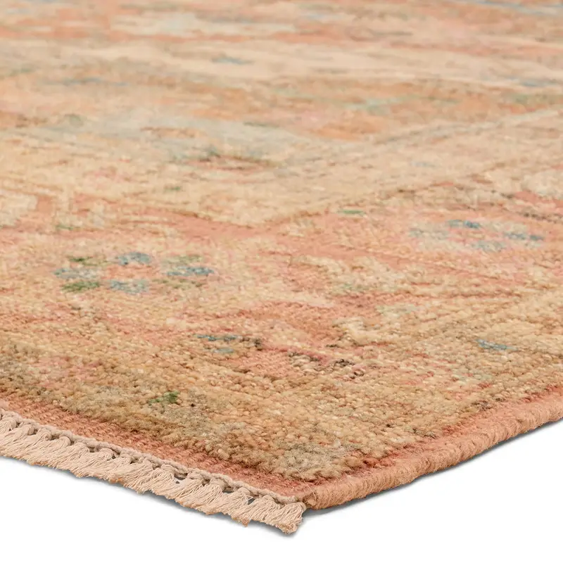 Skilled artisans expertly hand-knotted this traditional pink floral design using a blend of 90% wool and 10% cotton. The durable masterpiece incorporates the traditional Lachi technique to create a textured, high-low surface that evokes the charm of vintage rugs. With a rich, vibrant palette and resilient construction, it’s both a stunning and practical addition to any space.