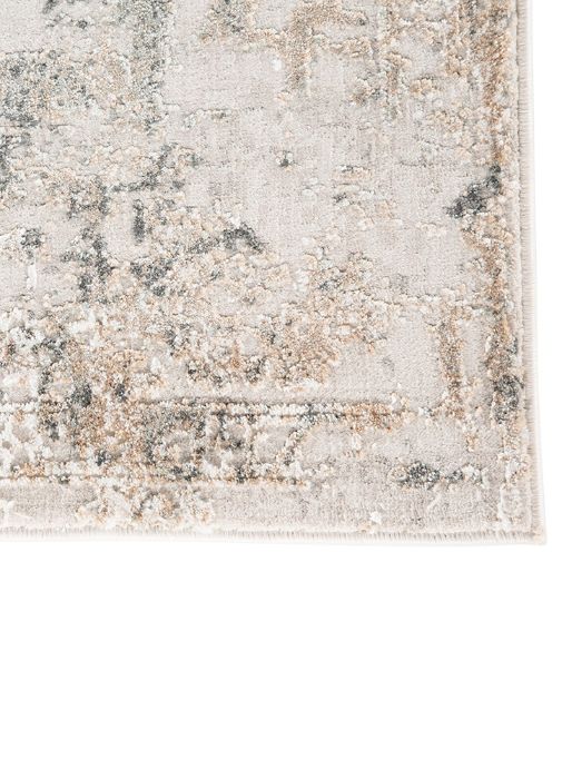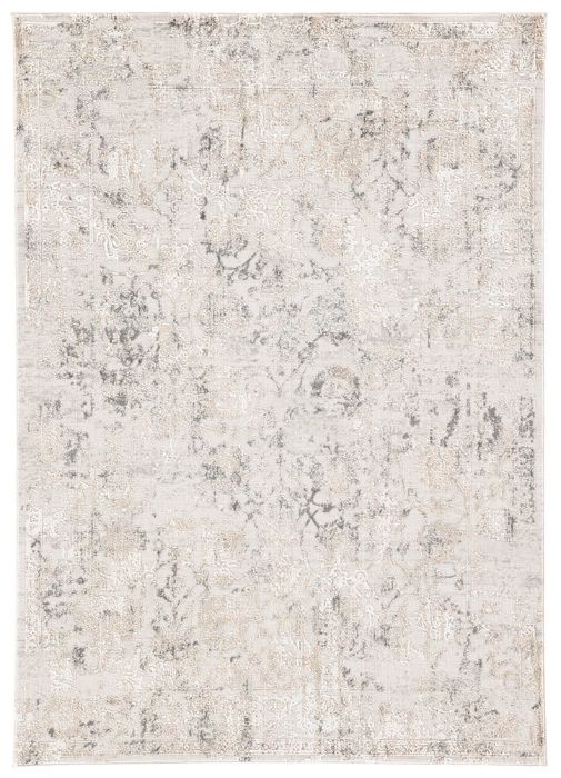 An elegant floral pattern with classic scrolling details and a regal expression of style. The distressed beige and gray colorway creates a vintage look on this power-loomed viscose and polyester accent.