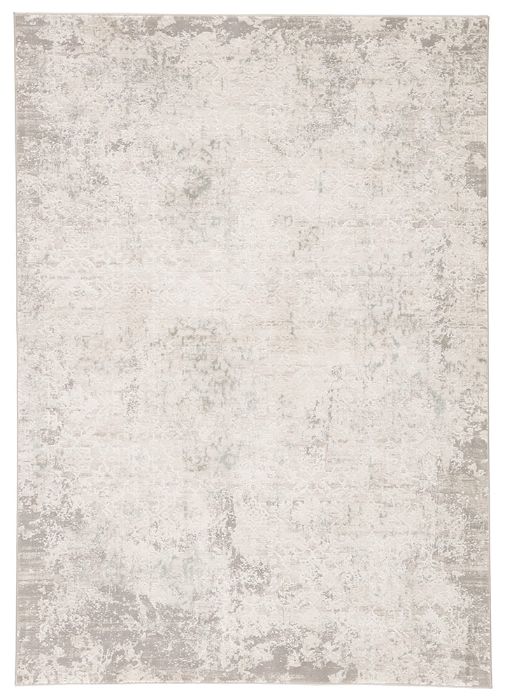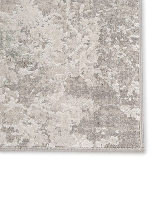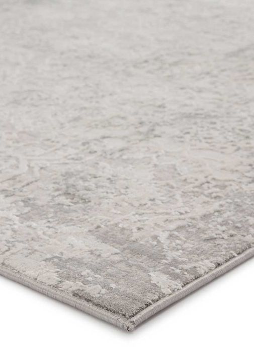 A stunningly abrashed brocade pattern in a neutral mix of ivory and gray hues. The mottled colorway creates a modern distressed look on this power-loomed viscose and polyester accent, soft with textured high-low pile.