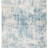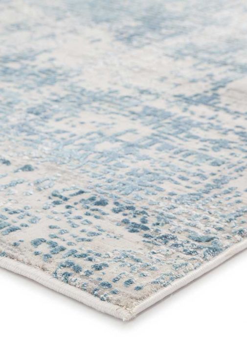 A thatched abstract pattern in a stunning blue, gray, and, ivory colorway. The mottled hues create a modern distressed look on this power-loomed viscose and polyester accent, soft with textured high-low pile.