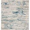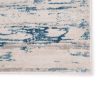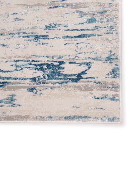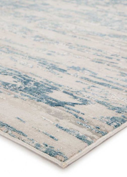 An ethereal abstract pattern in a stunning blue, gray, and ivory colorway. The mottled hues create a modern distressed look on this power-loomed viscose and polyester accent, soft with textured high-low pile.