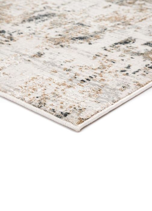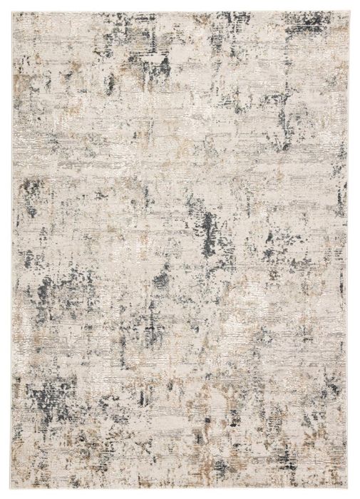 An abstract design in mottled neutrals. This power-loomed viscose and polyester accent’s stunning carved effect and subtle sheen capture light beautifully, highlighting the dark gray, gold, and ivory hues.