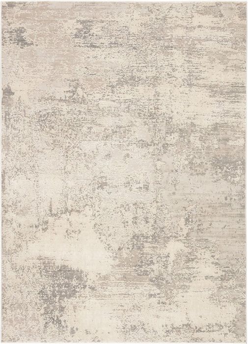 A luxurious abstract pattern with carved-like texture and a light, neutral palette. The ivory and gray colorway creates a vintage look on this power-loomed viscose and polyester accent.