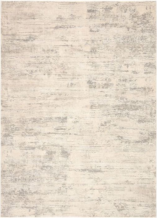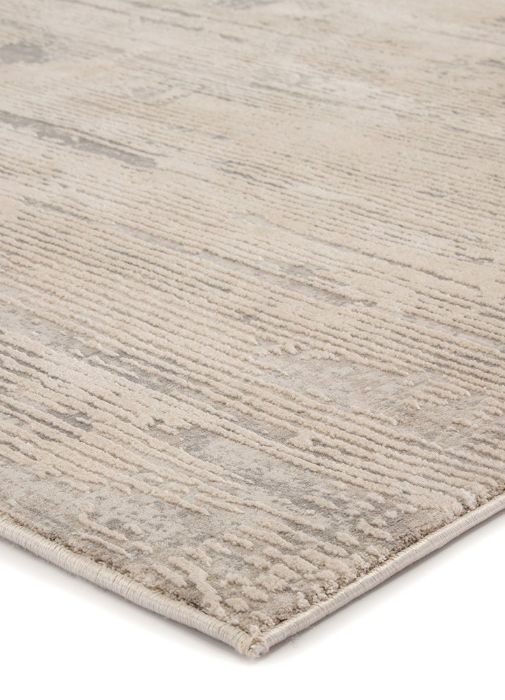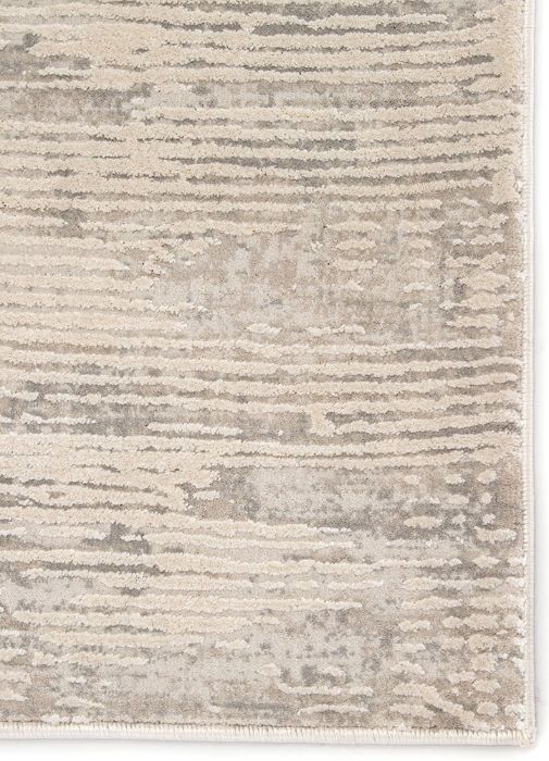 A linear abstract pattern with carved-like texture and a light, neutral palette. The ivory and cloudy gray colorway creates a modern look on this power-loomed viscose and polyester accent.