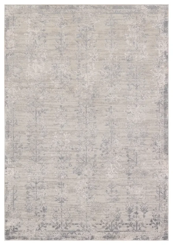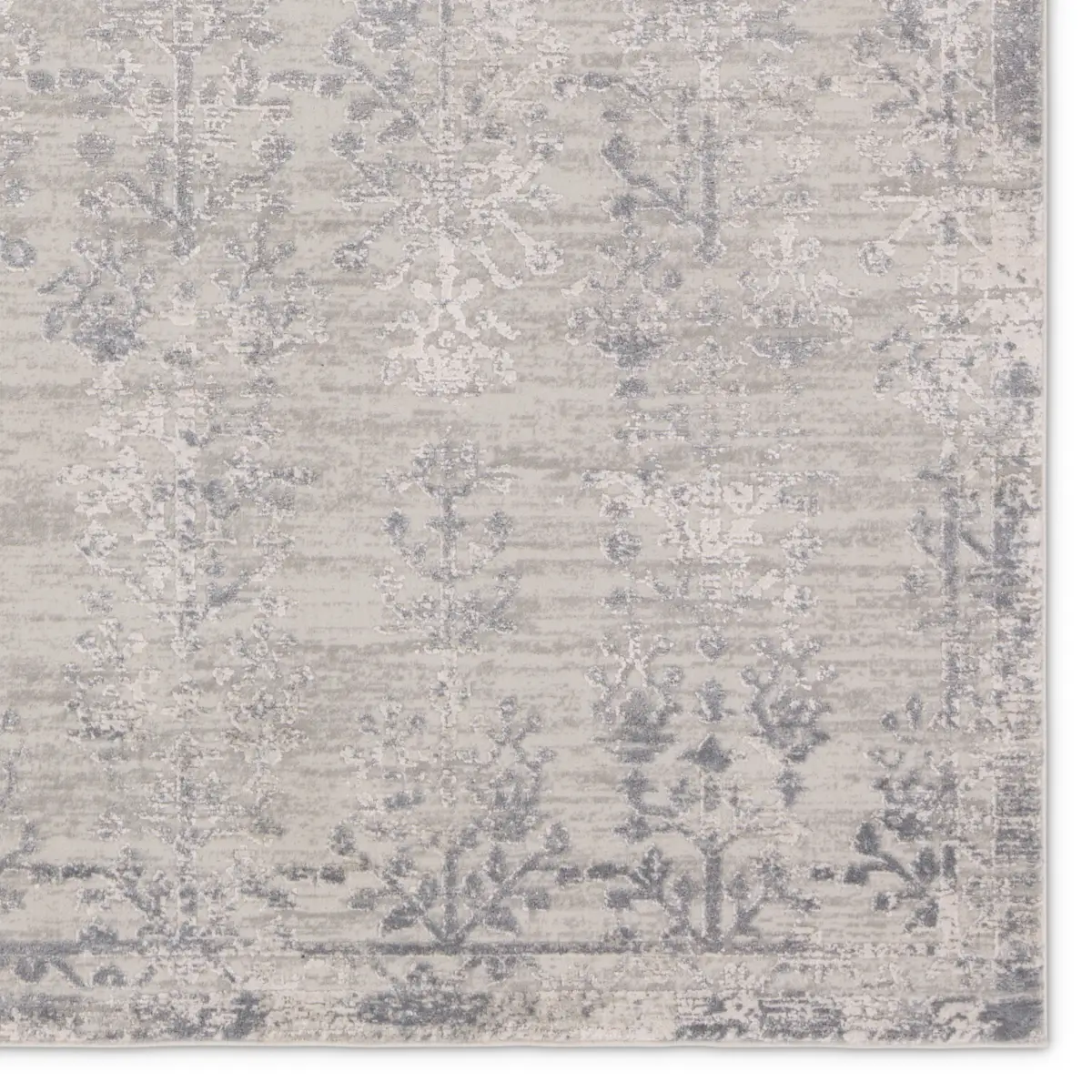 The CIQDIR collection artistically melds contemporary appeal with the timeless and intricate beauty of antique designs. The area rug boasts a silver and slate floral branch pattern with a thin border on a heathered gray and cream background. Intentional distressing creates a vintage look on this soft, power-loomed viscose and polyester accent piece. High-low pile adds dimension and texture that provide a grounding effect. This lustrous rug thrives in low-traffic spaces, such as bedrooms, formal dining areas, and formal living rooms.