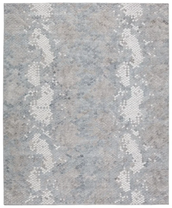 A classic construction with a modernist touch, the CLADIR collection brings interest and relaxed vibes to on-trend interiors. The rug showcases a textured geometric design in neutral blue, gray, taupe, and ivory tones. This wool and viscose accent grounds spaces with a distinctive look and artisan-made charm.