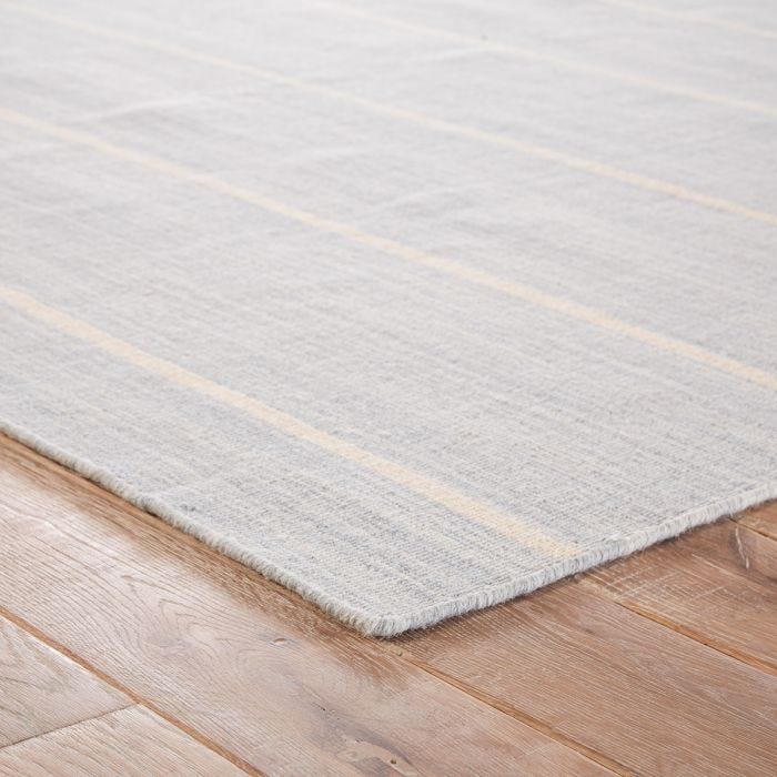 Classic with a ticking stripe, this soft blue and cool white flatweave area rug lends traditional charm to any space. This casual wool layer offers reversible use for easy care and timeless durability.