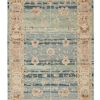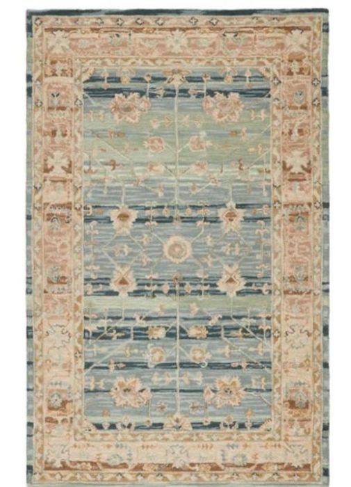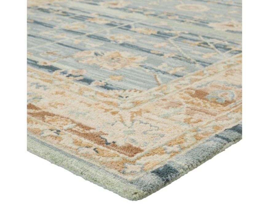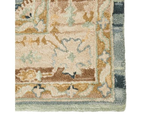 This hand-tufted collection boasts vivid jewel tones and uniquely distressed Turkish motifs, crafted to emulate traditional sun-faded, vintage designs. Showcasing an open, vine motif in a mix of subdued hues of blue, green, beige, and light brown. Inspired by the artistic imperfection of dye-lot changes in perfectly aged wool textiles, the looped pile of this rug features tonal colorway depth and textural dimension.