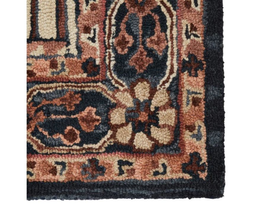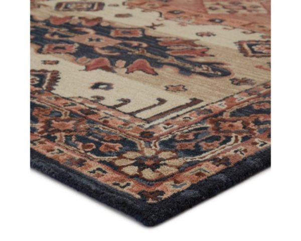 This hand-tufted collection boasts vivid jewel tones and uniquely distressed Turkish motifs, crafted to emulate traditional sun-faded, vintage designs. Showcasing a center medallion motif in an elegantly contrasted palette of cream, beige, deep blue, and dusty rose. Inspired by the artistic imperfection of dye-lot changes in perfectly aged wool textiles, the looped pile of this rug features tonal colorway depth and textural dimension.