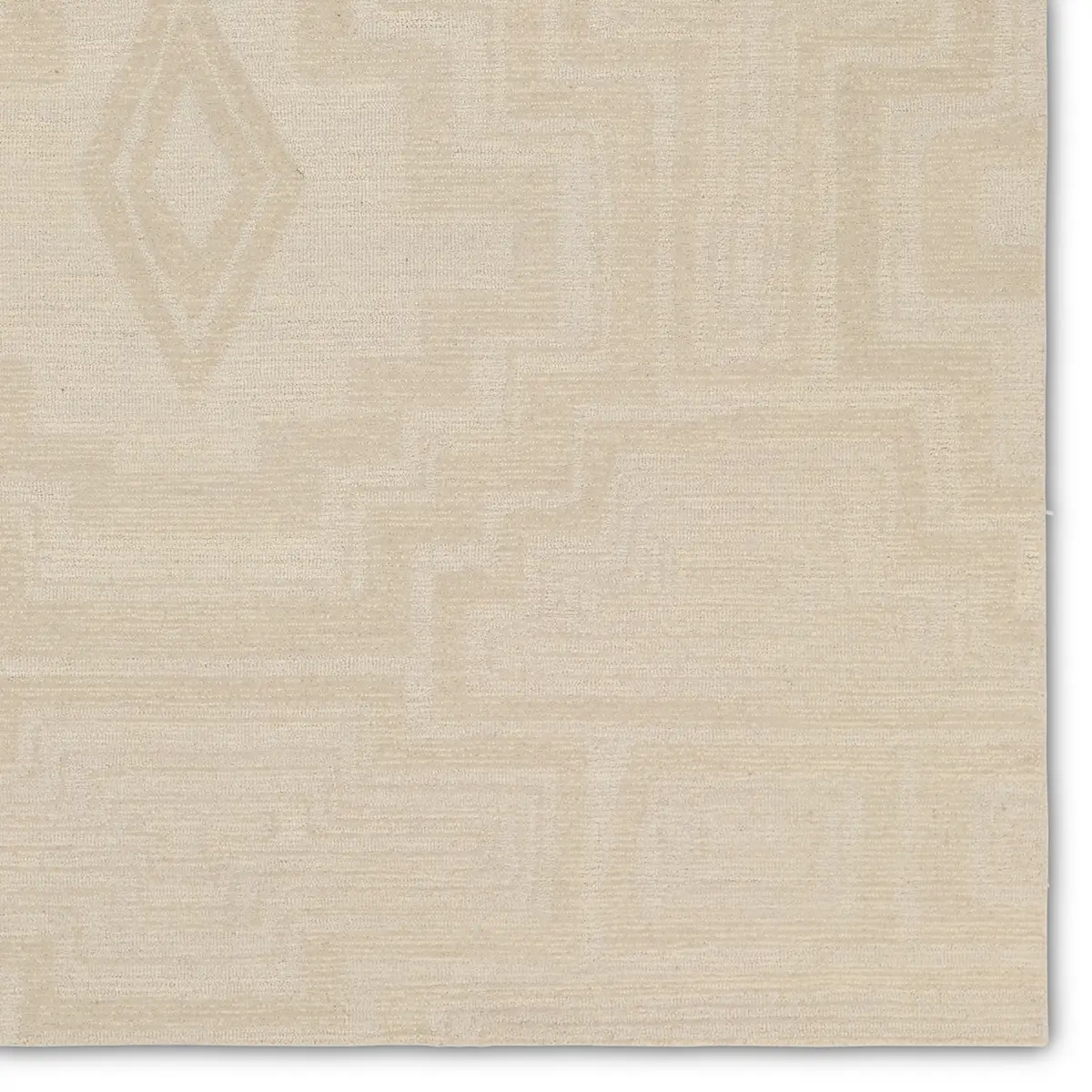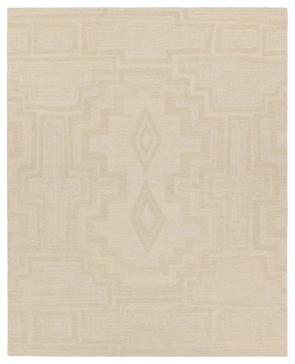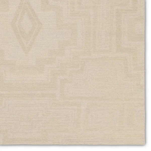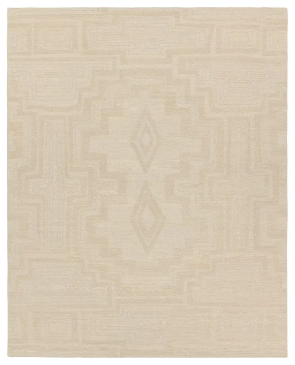 The hand-tufted COMDIR collection boasts vivid jewel tones and uniquely distressed Turkish motifs, crafted to emulate traditional sun-faded, vintage designs. The rug showcases an open medallion and geometric motif in a natural palette of light gray and cream. Inspired by the artistic imperfection of dye-lot changes in perfectly aged wool textiles, the looped pile of this rug features tonal colorway depth and textural dimension.