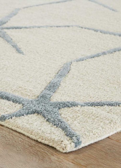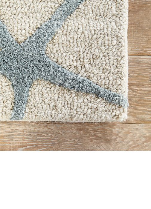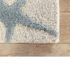 This coastal-themed area rug lends casual elegance to modern spaces. On a hand-tufted wool and viscose layer, a soft trail of starfish create a whimsical ocean-inspired pattern in a classic sky blue on off-white colorway.