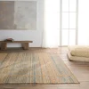 The DDIRRD collection blends relaxed, warm style with effortless modernity. The flat-woven rug is crafted of jute and wool for a fine, soft foundation underfoot. The stripe pattern in a natural brown and blue colorway offers versatility to any contemporary home. The sturdy fibers create an accent piece perfect for high and low traffic spaces like entryways, halls, living rooms, and dining areas.