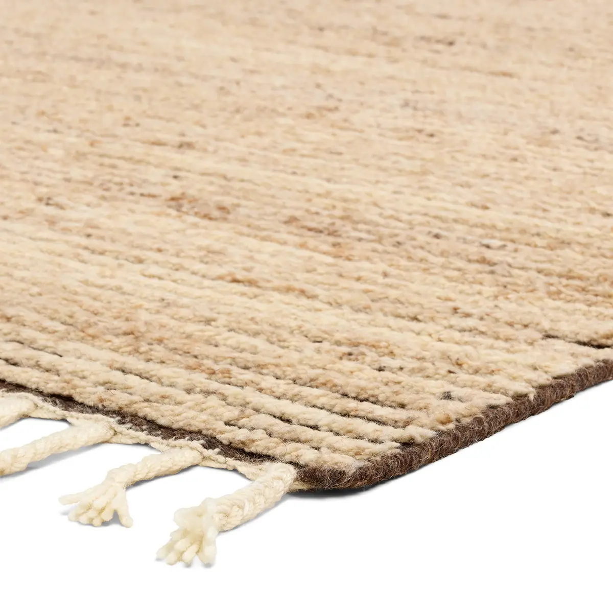 Drawing inspiration from Moroccan textiles, showcases the beauty in simplicity. Durable wool is hand-knotted onto a cotton foundation to create this high-piled accent piece. Its warm, solid tan design is finished with braided fringe trims for a touch of boho charm. The rug instantly adds warmth and comfort to any indoor, medium-traffic setting.