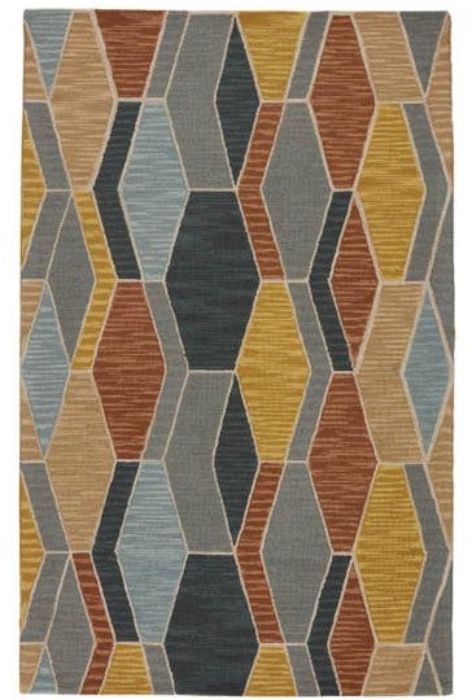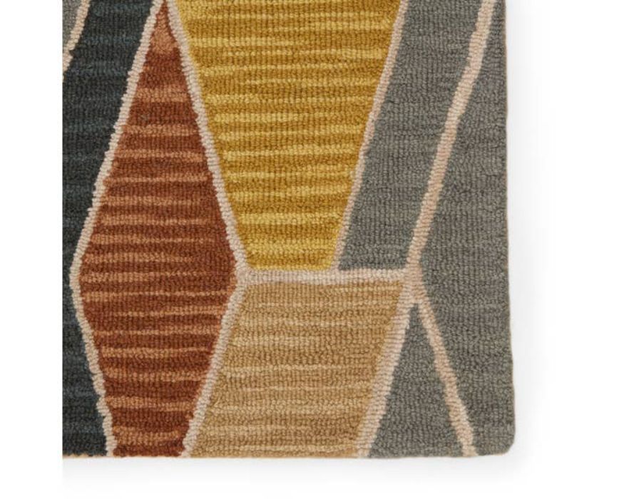 The ultra-mod and perfectly geometric collection infuses interiors with bold patterns and rich color schemes. An eclectic design and earthy slate, brown, and ocher colorway come together to form this rug’s dynamic appeal. Hand tufted of wool, this retro-inspired rug boasts cushioned looped pile for an indulgent texture underfoot.