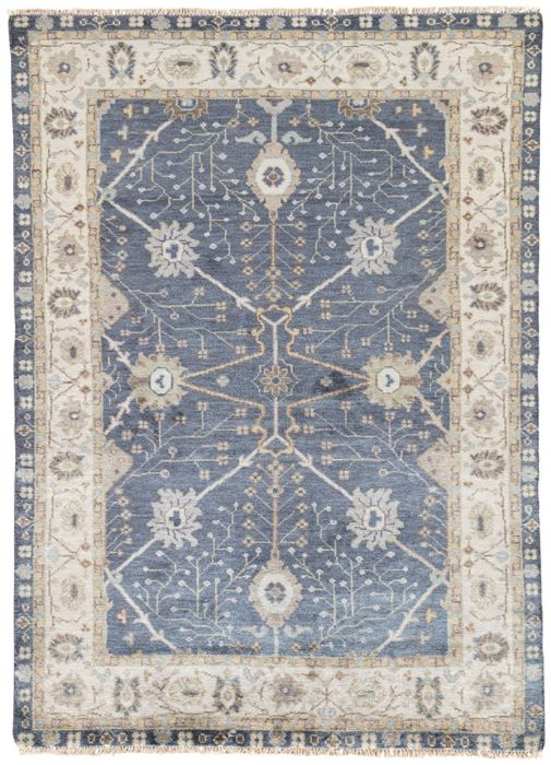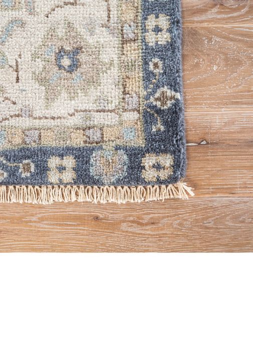 nCalling on classic elegance for a stunningly soft and richly patterned addition to traditional and contemporary spaces alike. The design showcases Persian floral medallions and an intricate border in muted hues of tan and blue. An antiqued wash and knotted fringe detailing complete the Old World look of this hand-knotted wool rug.