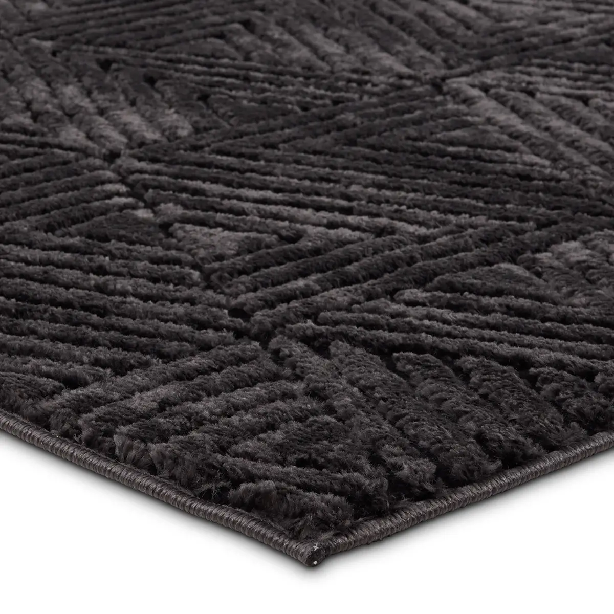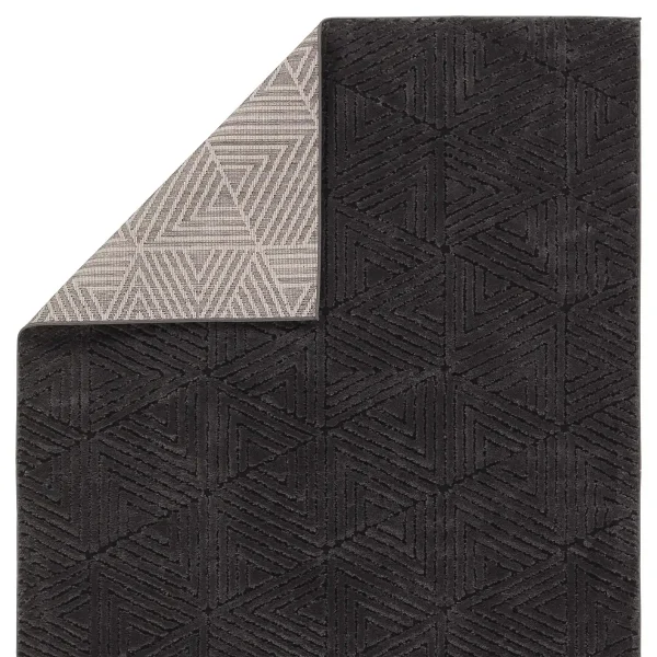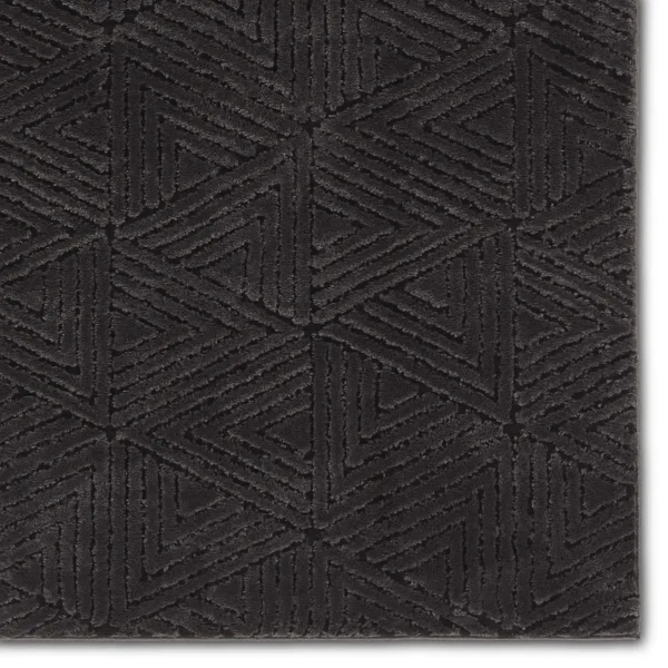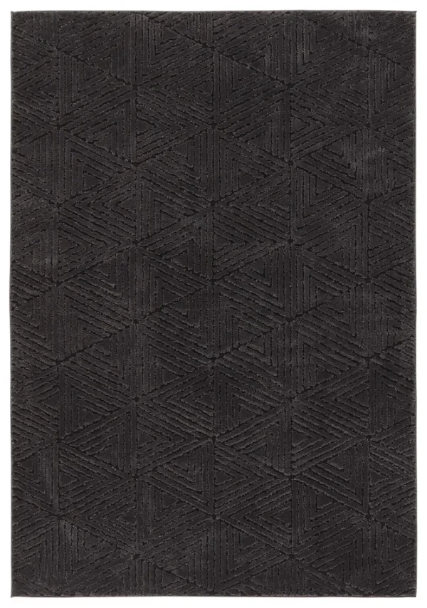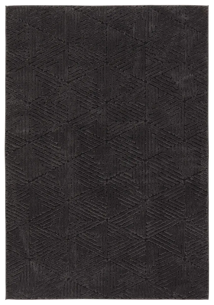 Modern geometrics and a lustrous sheen define the collection by Nikki Chu. The soft, plush pile features high and low areas for added texture that delights underfoot. The design showcases a black, geometric, triangle pattern. Polypropylene and polyester blend provides natural stain resistance and low maintenance care. This rug best suits medium-traffic spaces of the home, such as living rooms, bedrooms, and dining rooms.