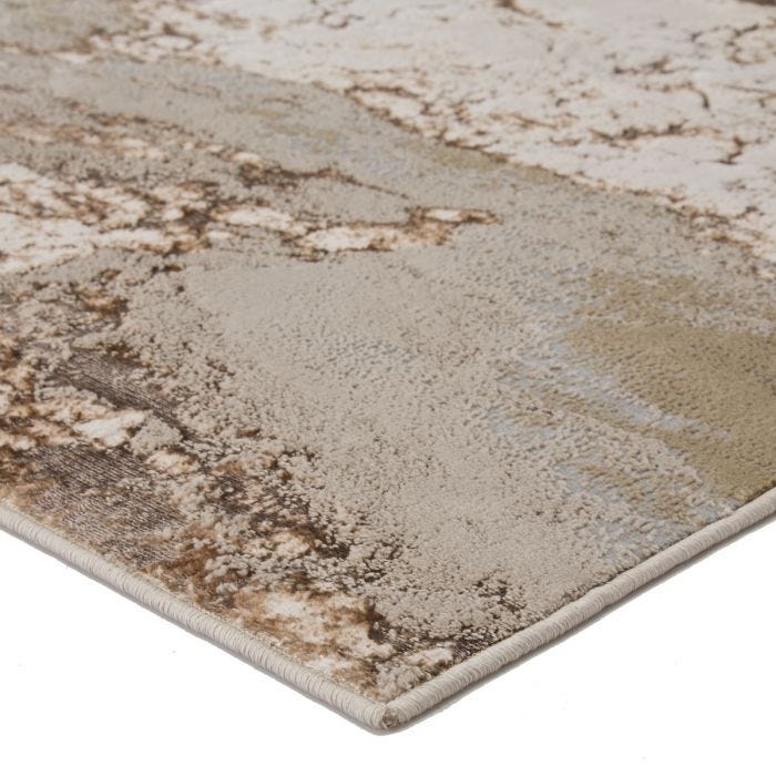 The show-stopping yet surprisingly versatile appeal, brings contemporary edge to any home. The organic abstract design of this rug creates a dynamic and shimmering statement in soft tones of gray, taupe, and brown. This power-loomed rug features metallic polyester fibers blended with stain-resistant polypropylene for a brilliant sheen from various perspectives.