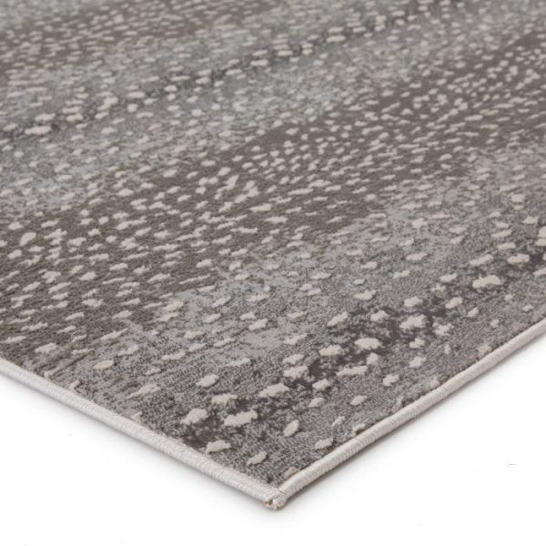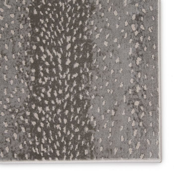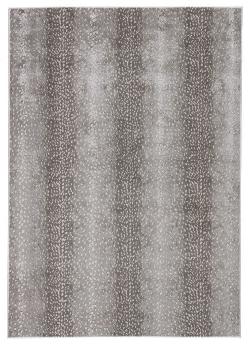 The show-stopping yet surprisingly versatile appeal, brings contemporary edge to any home. The gray and silver, sophisticated, spotted animal print is familiar and chic, perfect for adding texture and intrigue to a room. This power-loomed rug features metallic polyester fibers blended with stain-resistant polypropylene for a brilliant sheen from various perspectives.
