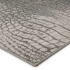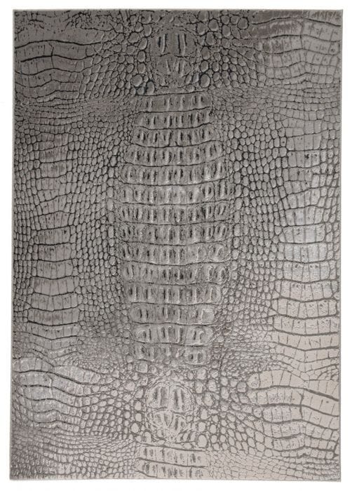The show-stopping yet surprisingly versatile appeal, brings contemporary edge to any home. The sleek and stunningly eclectic rug boasts a beige, silver, and gray reptilian motif that lends the perfect touch of exotic style to on-trend spaces. This wildly textured power-loomed rug features metallic polyester fibers blended with stain-resistant polypropylene for a brilliant sheen from various perspectives.