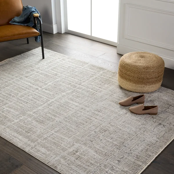 Capturing the elegance of neutral, vintage-inspired patterns and melds Old World aesthetics with an updated and luxurious vibe. This rug boasts a banded abstract motif in tonal hues of dark gray, dark taupe, and light gray. Soft and lustrous, this chameleon-like design emulates the timeless style of a Turkish hand-knotted rug, but in an accessible polyester and viscose power-loomed quality.