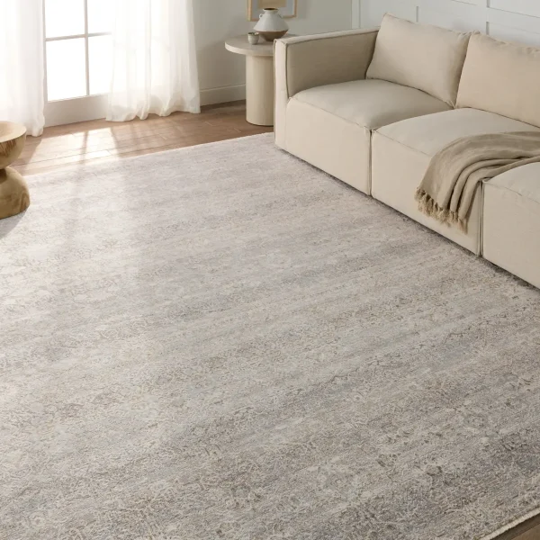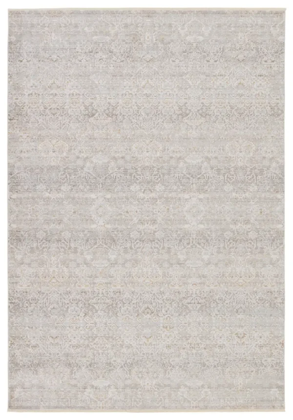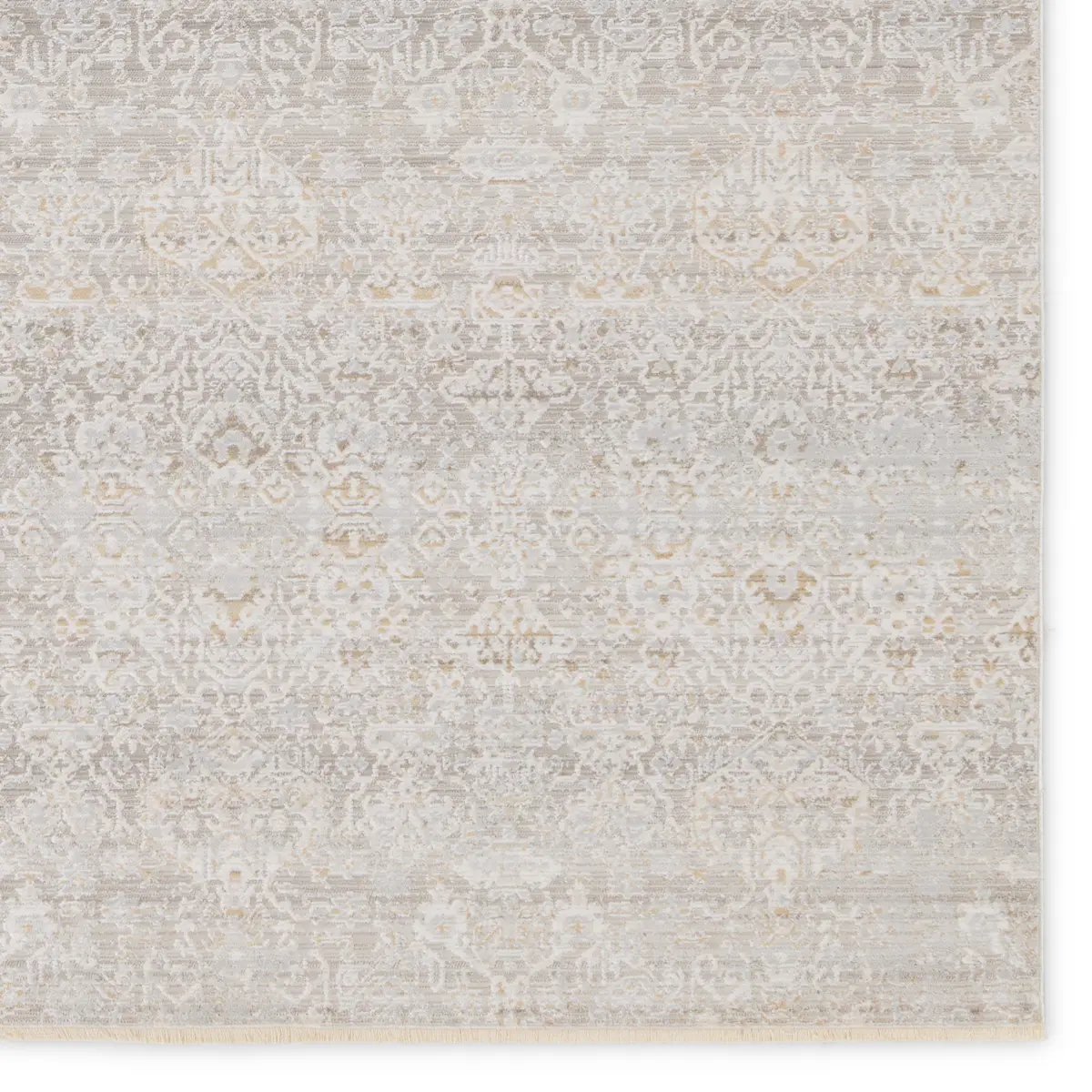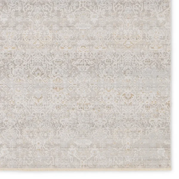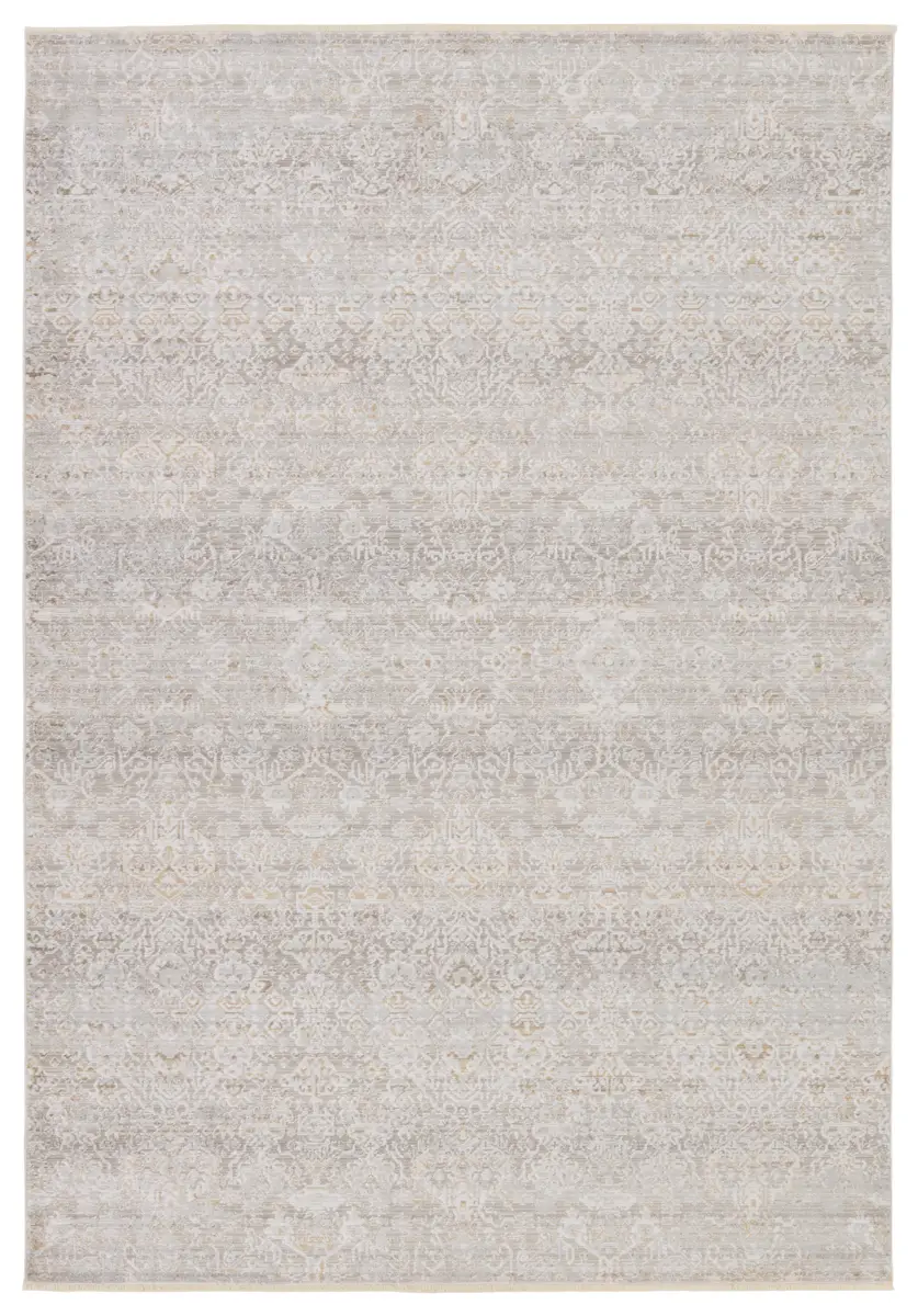 Capturing the elegance of neutral, vintage-inspired patterns and melds Old World aesthetics with an updated and luxurious vibe. This rug boasts a repeating, floral trellis design in tonal hues of taupe, silver, cream, and hints of gold. Soft and lustrous, this chameleon-like design emulates the timeless style of a Turkish hand-knotted rug, but in an accessible polyester and viscose power-loomed quality.