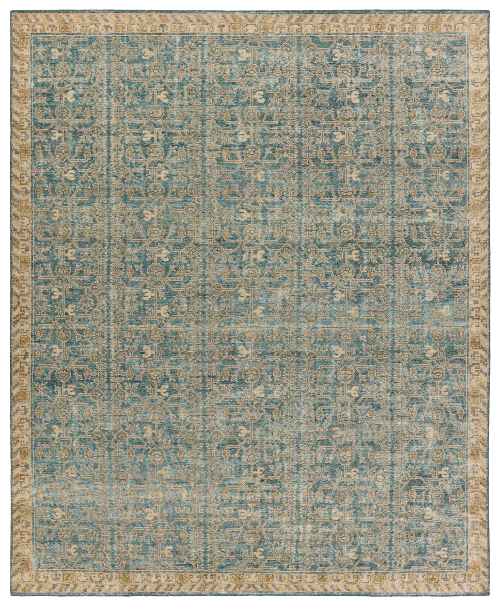 The DIREDE collection pairs fresh, vibrant colors with provincial Persian motifs for the perfect blend of new and time-honored. This hand-knotted wool rug anchor any contemporary space and lend an inviting accent to any heavily trafficked and well-lived rooms in the home. The earthy tones of the rug provide an inviting and grounding accent to any heavily trafficked and well-lived rooms in the home. The trellis pattern of this dark turquoise, gold, cream, gray, and tan rug lends just enough decorative intrigue for a global-inspired vibe.