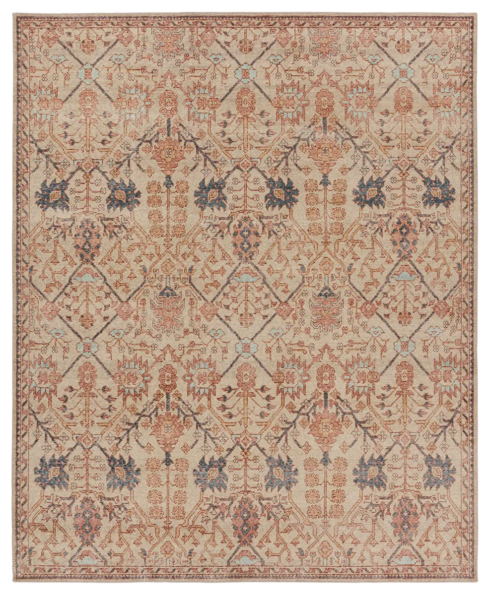 The DIREDE collection pairs fresh, vibrant colors with provincial Persian motifs for the perfect blend of new and time-honored. This hand-knotted wool rug anchor any contemporary space and lend an inviting accent to any heavily trafficked and well-lived rooms in the home. The earthy tones of the rug provide an inviting and grounding accent to any heavily trafficked and well-lived rooms in the home. The floral trellis pattern of this rust, cream, gray, navy, and gold rug lends just enough decorative intrigue for a global-inspired vibe.