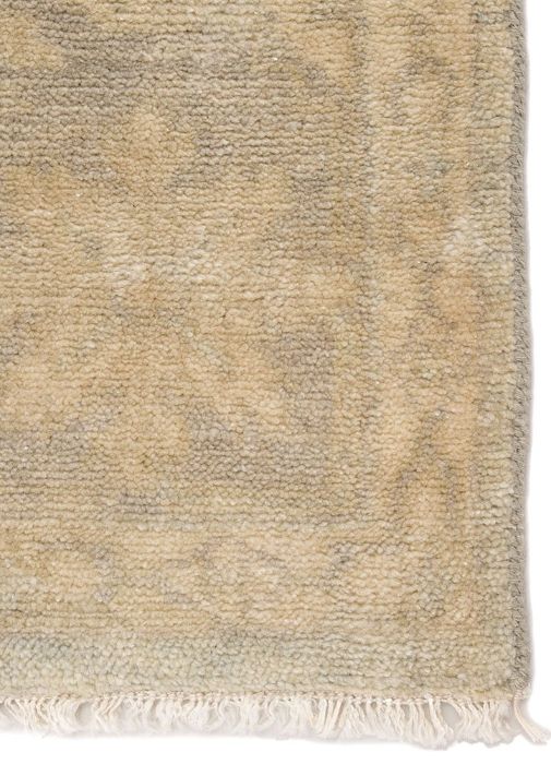 This collection emanates traditional elegance, lending a soft and serene look to transitional homes. This area rug features a faded Oushak design in muted gray and taupe tones. This hand-knotted wool rug grounds living spaces with a classic, earthy look.