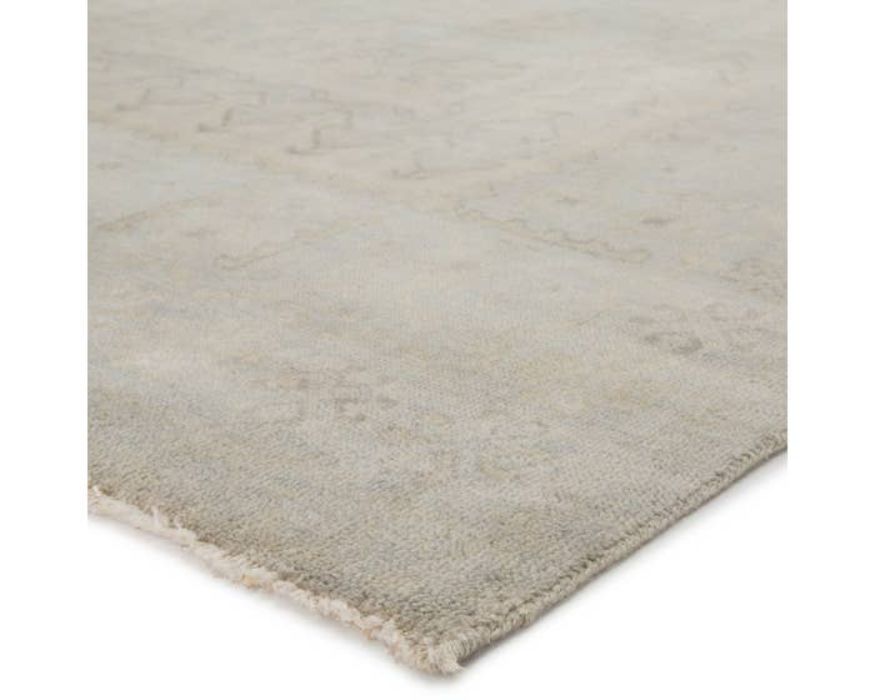 This collection emanates traditional elegance, lending a soft and serene look to transitional homes. Featuring a washed vintage-inspired design in muted gray and beige tones. This hand-knotted wool rug grounds living spaces with a classic, stately look.