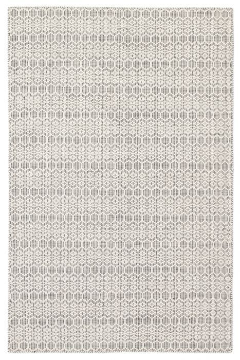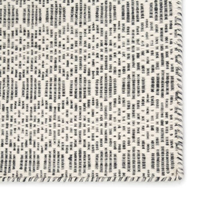 The durable rug boasts a playful and neutral Geometric lattice design of honeycomb and diamond shapes. The ivory and gray color palette grounds contemporary spaces with a light, versatile scheme.