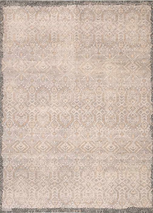Inspired by traditional style and beautifully detailed antique textile designs. The hand-knotted area rug showcases a captivating geometric design in muted tones of gray and gold. A charcoal edge creates a unique border effect around this globally inspired wool rug.