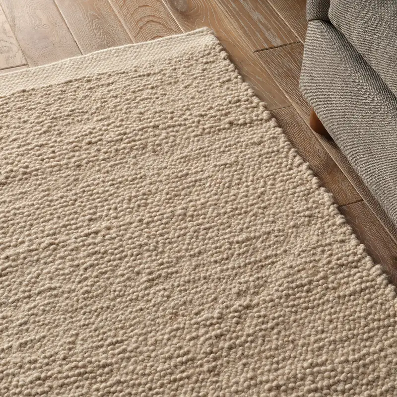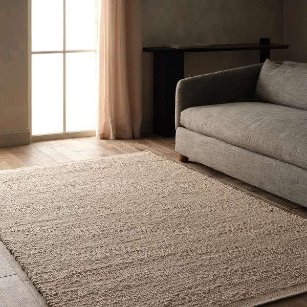 Cozy and stylish in the same moment, this hand-loomed boasts the soft and inviting texture of the on-trend shearling look with the addition of subtle, sophisticated details. Blended of durable wool and polyester, the light and bright featuring a textural, ivory design trimmed with flatwoven gray and ivory heathered edges.