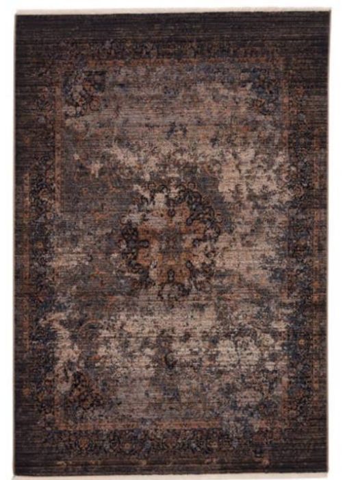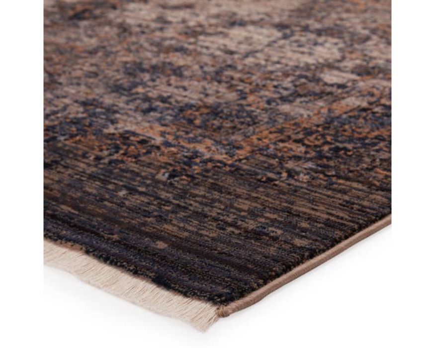 Inspired by the vintage perfection of sun-bathed Turkish designs, this collection showcases detailed traditional motifs that have been updated with on-trend, saturated colorways. Boasting an erased medallion in deep, moody tones of navy, black, ivory, gray, and gold. This power-loomed rug features cotton fringe detailing, a natural result of weft yarns, that echoes hand-knotted construction and adds brilliant texture to the plush, durable polypropylene pile.pile.