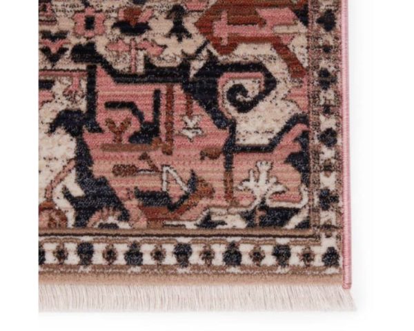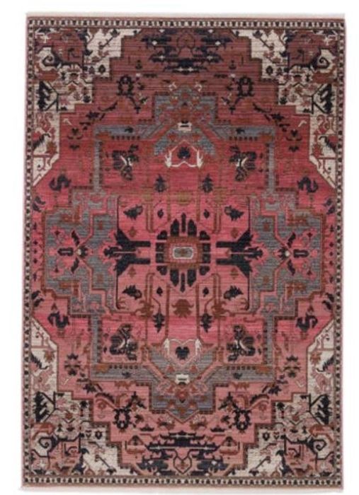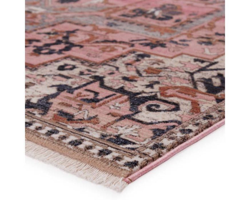 Inspired by the vintage perfection of sun-bathed Turkish designs, this collection showcases detailed traditional motifs that have been updated with on-trend, saturated colorways. Boasting a bold center medallion in vibrant tones of pink, navy, black, and gray. This power-loomed rug features cotton fringe detailing, a natural result of weft yarns, that echoes hand-knotted construction and adds brilliant texture to the plush, durable polypropylene pile.