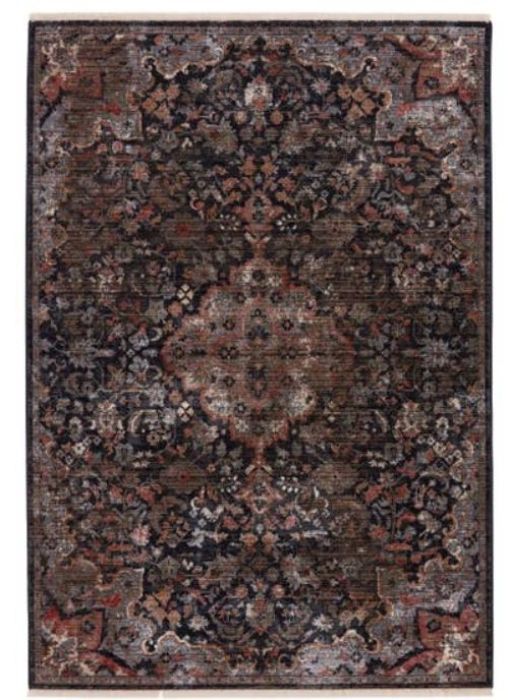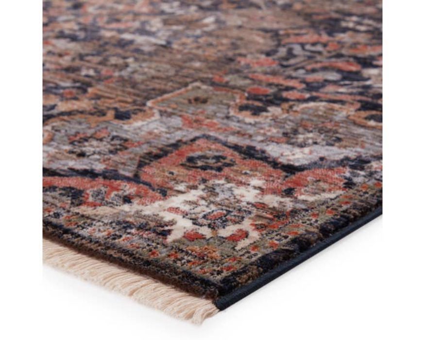 Inspired by the vintage perfection of sun-bathed Turkish designs, this collection showcases detailed traditional motifs that have been updated with on-trend, saturated colorways. Boasting an elegantly distressed medallion in rich tones of black, navy, dark taupe, red, and gray. This power-loomed rug features cotton fringe detailing, a natural result of weft yarns, that echoes hand-knotted construction and adds brilliant texture to the plush, durable polypropylene pile.